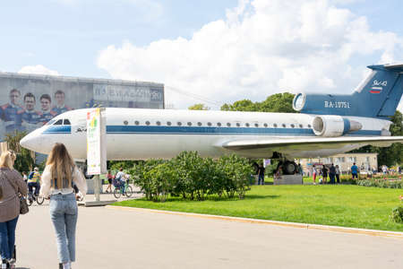 08.14.2021 Moscow, Russian Federation, Famous Soviet passengerJet Airplane Yak-42 at VVC VDNH