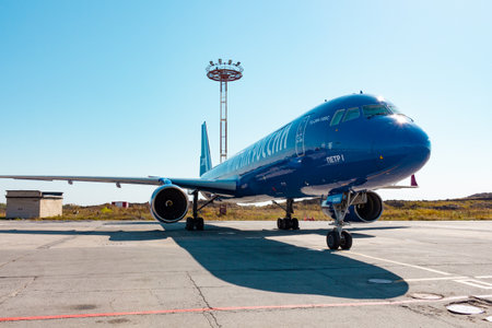 KHABAROVSK, RUSSIA - SEP 29, 2018: Tupolev Tu-204 RA-64051 Aviastar Airlines stands in Khabarovsk airport. The Plane Is Russian Post.