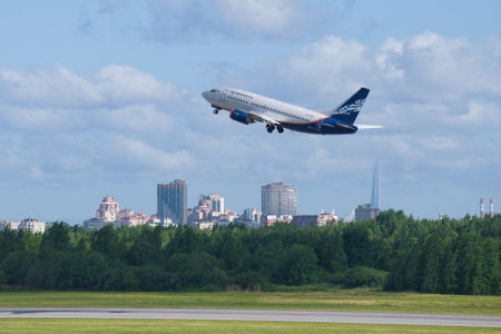 ST PETERSBURG, RUSSIA - JUNE 20, 2018: Aircraft Boeing 737-505 (VP-BKV) of the Nordavia airline on takeoff at Pulkovo airport