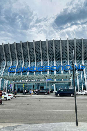Simferopol, Crimea-June 23, 2021: City landscape with a view of the airport building and transport
