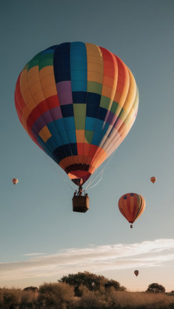 Experience the thrill of a vibrant hot air balloon soaring above stunning scenery.