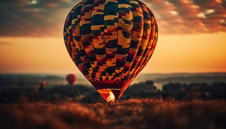 Colorful hot air balloon soars over stunning nature landscape generated by artificial intelligence