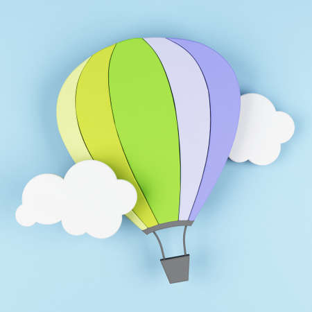 Hot air balloon in the blue sky with clouds. 3d rendering