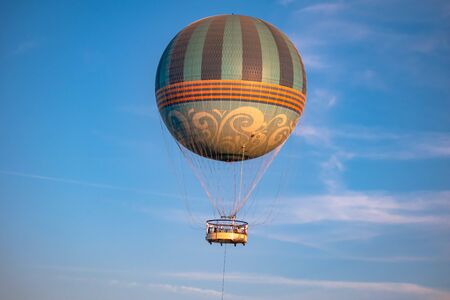 Orlando, Florida. November 29, 2019. Top view of air balloon flying in Lake Buena Vista 1