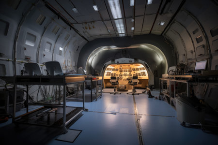 Interior of an Advanced Aerospace Engineering Facility Showcasing a Spacious Aircraft Fuselage Design Generative AI