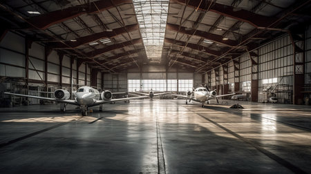 Generative AI Civil aircraft on maintenance of engine and fuselage repair in hangar