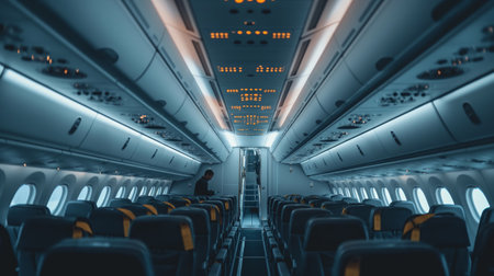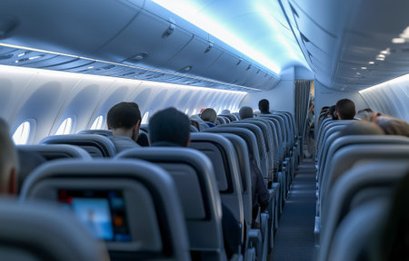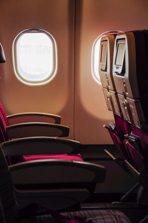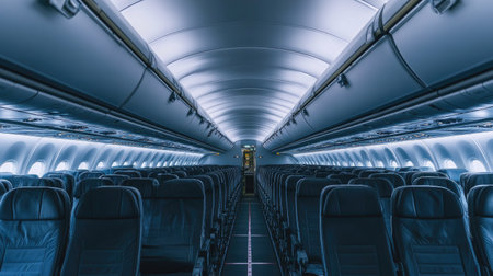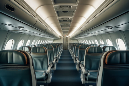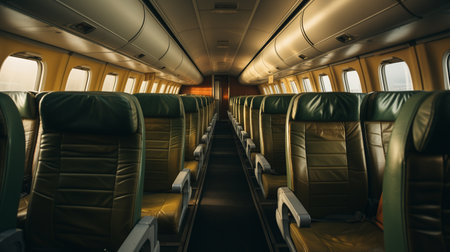 Passenger Cabin Interior with Seats in a Row for Comfortable Air Travel.
