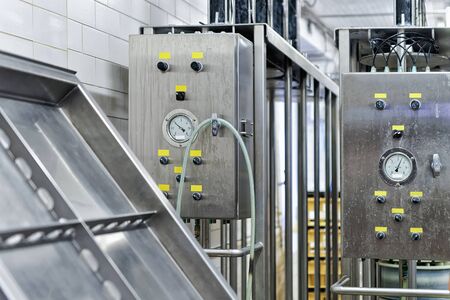 Automated equipment for the production of Gruyere de Comte Cheese in the dairy in Franche Comte, Burgundy, France.