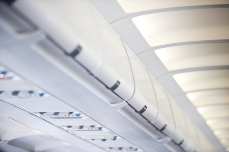 Generative AI Overhead compartments in an aircraft, demonstrating spacious storage for carry-on luggage during flight