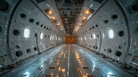 Interior of a Spacious Aircraft Fuselage Showing the Metal Structure for Potential Engineering and Construction Projects Generative AI