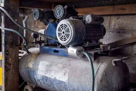 Air Compressor Motor Engine in Workshop Garage