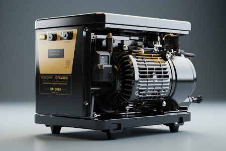 Modern electric generator on a grey background. 3d rendering. Computer digital drawing.