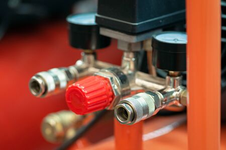 Flow regulator to reduce the pressure of the gas coming from the air compressor. gas pressure gauge in production. selective focus