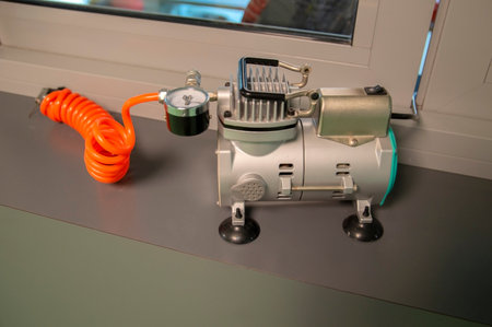 Mini air compressor on isolated white background