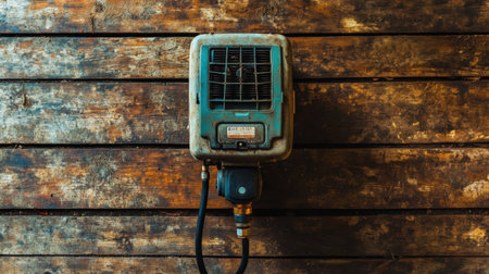 Capture the essence of vintage charm with this wall-mounted heater unit set against a rustic wooden surface, showcasing texture and character in a cozy setting.