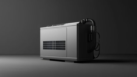 A sleek representation of modern industrial equipment featuring pipes, a large tank, and control panels, perfect for showcasing technology in advertisements.