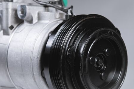 Close-up New car air conditioning compressor on grey background