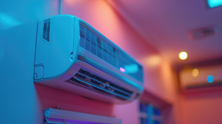 A sleek air conditioning unit illuminated with vibrant neon lights, emphasizing modern design and functionality for indoor climate control and home comfort solutions.