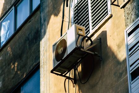 Tel Aviv Israel January 23, 2020 View of a unit air conditioning on a facade of a building in the streets of Tel Aviv in the afternoon