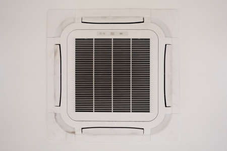 Newly installed air conditioner is hanging from the ceiling of a modern building