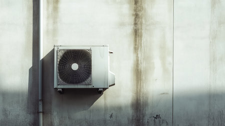 Modern air conditioning unit on a minimalistic gray tiled wall, showcasing sleek design and functionality for home or office environments