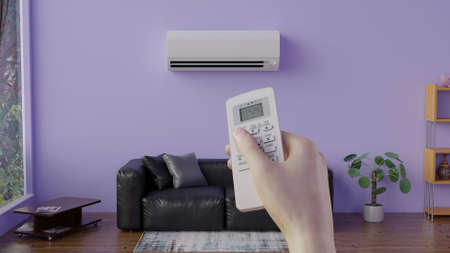 Modern living room interior with air conditioner and sofa. 3d rendering