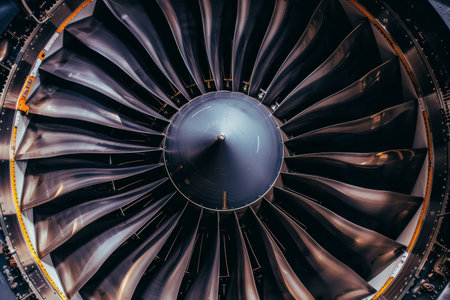 Close-Up of Modern Jet Engine Turbine Blades in Aircraft Industry