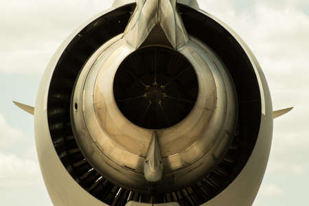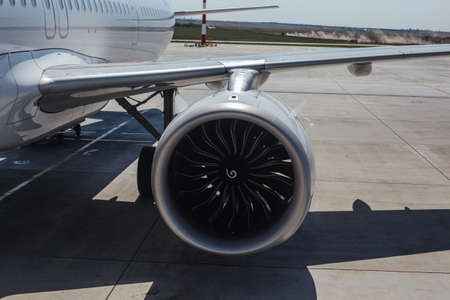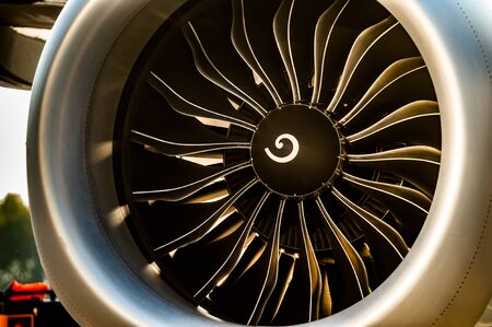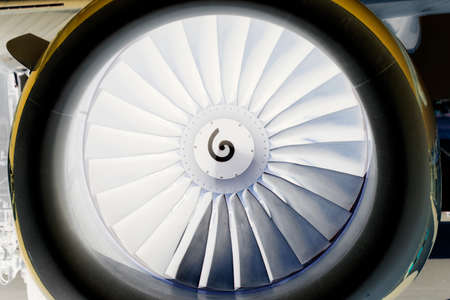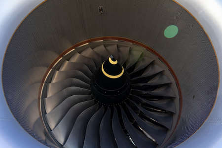 Turbine of a modern airplane, close-up view.