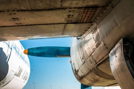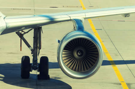 Engine of the airplane at the airport