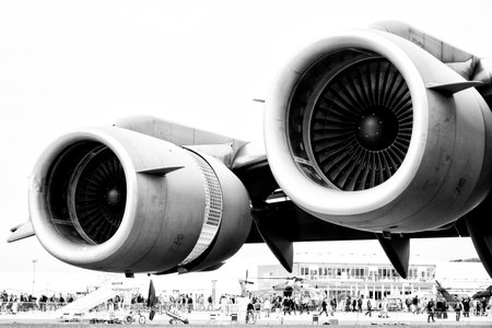 BERLIN - SEPTEMBER 14: Engines Boeing C-17 Globemaster (black and white), International Aerospace Exhibition ILA Berlin Air Show, September 14, 2012 in Berlin, Germany