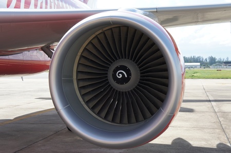 Close up of a turbofan jet engine in modern airliner.