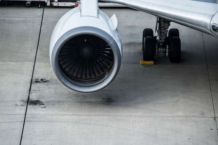 close-up on airplane engine in the airport