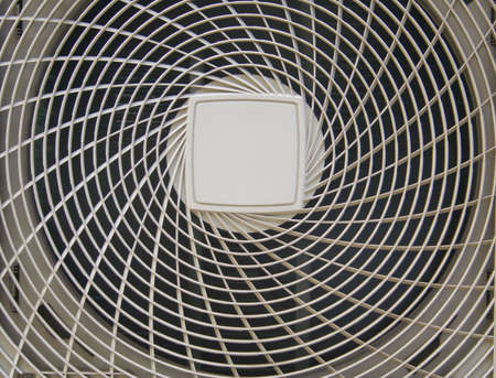 Industrial fans for air conditioning. Dirty air conditioner works behind a metal grate.