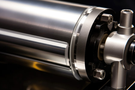 Close-up of a pneumatic cylinder in motion, tightly and precisely compressing air.