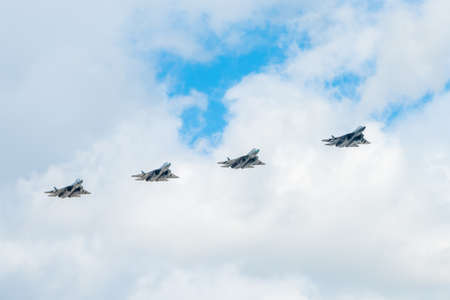 MOSCOW, RUSSIA - MAY 4, 2018: A group of airplane. Rehearsal of parade devoted to May 9, Victory Day in World War II. May 4, 2018 in Moscow.