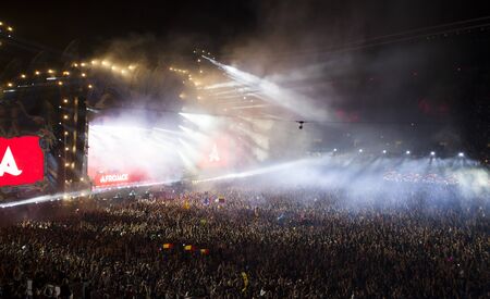 Cluj-Napoca, Romania - August 6, 2017: Crowd having fun at Afrojack, a Dutch DJ, record producer and remixer from Spijkenisse, live concert at Untold Festival, the Best Major Music Festival of Europe