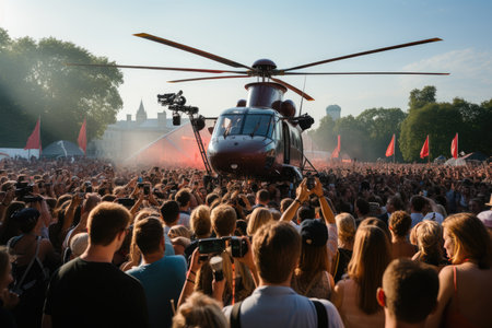 Excitement Builds Concertgoer Arrives at Music Festival, Plane Soars Above Crowded Venue