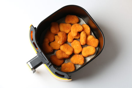 Fast food. Fried chicken nuggets with french fries in a Electric air fryer.