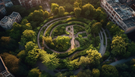 An aerial view of a labyrinth garden AI generated