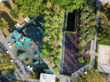 Aerial view of children playground in the park. Top view.