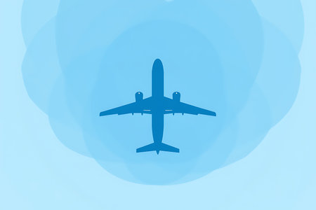 Airplane symbol made from blue flowers on a white background. a focus on beauty and nature. This concept can be used for eco friendly travel promotions or floral themed designs. High quality photo