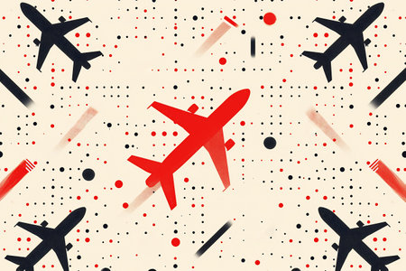 Abstract pattern of world map and airplanes inspired by the concept of business trips and travel planning. Travelling concept. Minimalistic illustration. Generative AI.