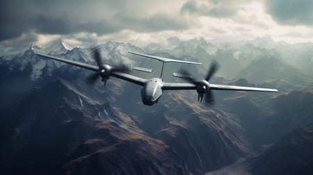 Military drone at high altitude in the sky with. Generative AI.