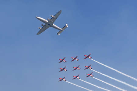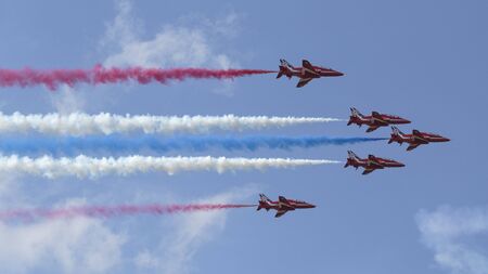 Gdynia, Poland - August 21, 2021: The Royal Air Force Aerobatic Team of the United Kingdom at the Aero Baltic show in Gdynia, Poland.
