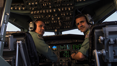 African American pilots team posing for the camera in aircraft cockpit