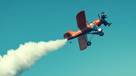 Aircraft Performing Aerobatics with Contrail Against Dramatic Sky