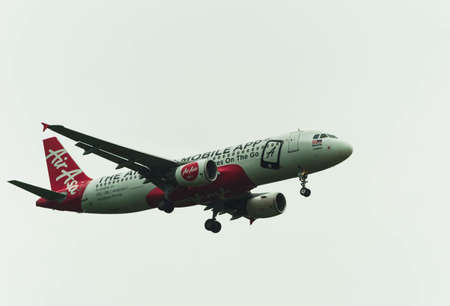 Kuala Lumpur, Malaysia, 15th March 2017, Air Asia aircraft on landing approach at the airport
