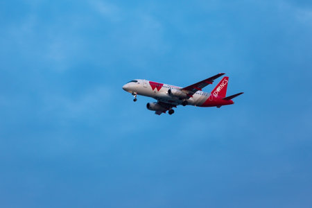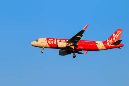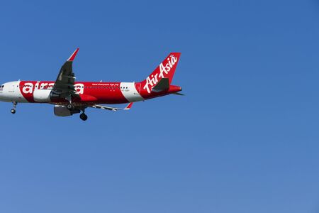 BANGKOK -JANYUARY 2018 : Thai Air Asia - Airbus A320-214 Low cost airline landing to Don Mueang International Airport on January 19, 2561 Bangkok,Thailand