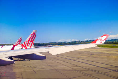 Gold Coast, Australia - December 12th , 2017 : Airport views from an airplane window during landing at Gold Coast International Airport, Australia