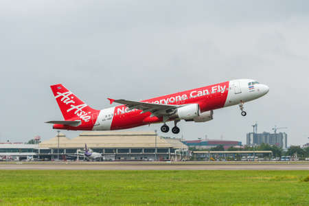 Don Mueang International airport, Bangkok, Thailand-November 18, 2017: Airbus A320 of Thai AirAsia is taxiing on the runway before taking off. AirAsia company is the largest low cost airlines in Asia.